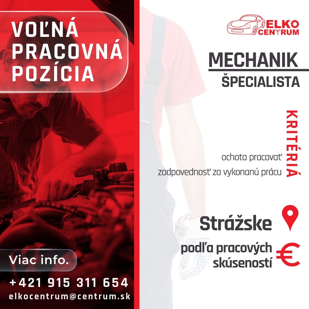 Práve sa nám uvoľnila pracovná pozícia: Mechanik špecialista